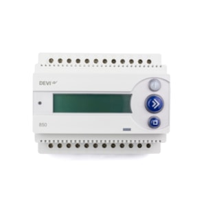 Digitalni kontroler za otapanje leda i snega DEVIreg 850, 220 V- 240V~ 50/60 Hz, 2 nezavisne zone rada, alarmni relej 5A, opseg temperature -10°…+50°C, opseg vlage 10…95%, montaža DIN šina ili sopstveno kućište, LED. Proizvođač”DEVI” Danska
